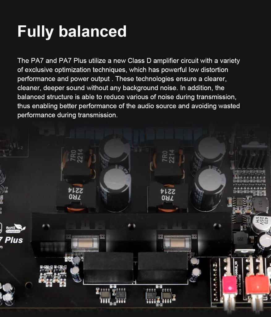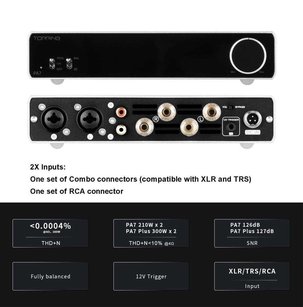 [Усилитель мощности TOPPING PA7 с новой схемой усилителя класса D] В TOPPING PA7 используется новая схема усилителя класса D, которая в полной мере использует уникальную технологию оптимизации TOPPING PA7.. Эта технология обеспечивает чистый, глубокий звук с низким уровнем искажений и мощной выходной мощностью.. Сбалансированная структура снижает уровень шума во время передачи, улучшает работу источника звука и устраняет ненужные помехи во время передачи.. Эти усилители обеспечивают звук без фонового шума, позволяя вам наслаждаться чистыми, глубокими тонами.
