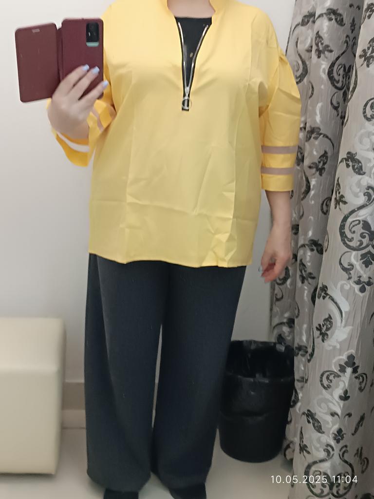 Мне блузка понравилась, но я сглупилп и заказала размер больше, причём намного. На сво обг 108/р м/ этой блузки, я заказала xl. Очень большая. Можно было бы носить как оверсайз, но рукав втачной. БЕРИТЕ СВОЙ РАЗМЕР!