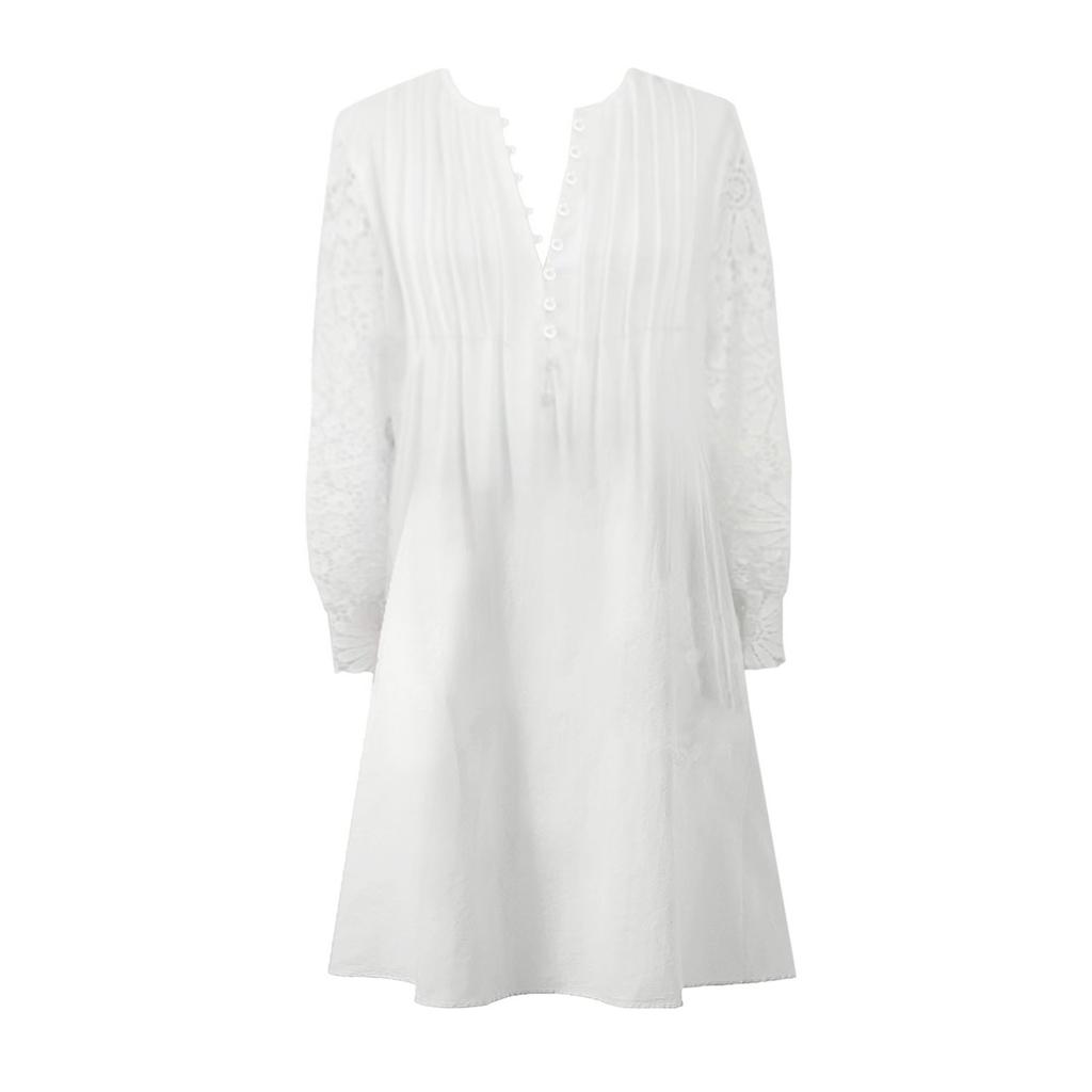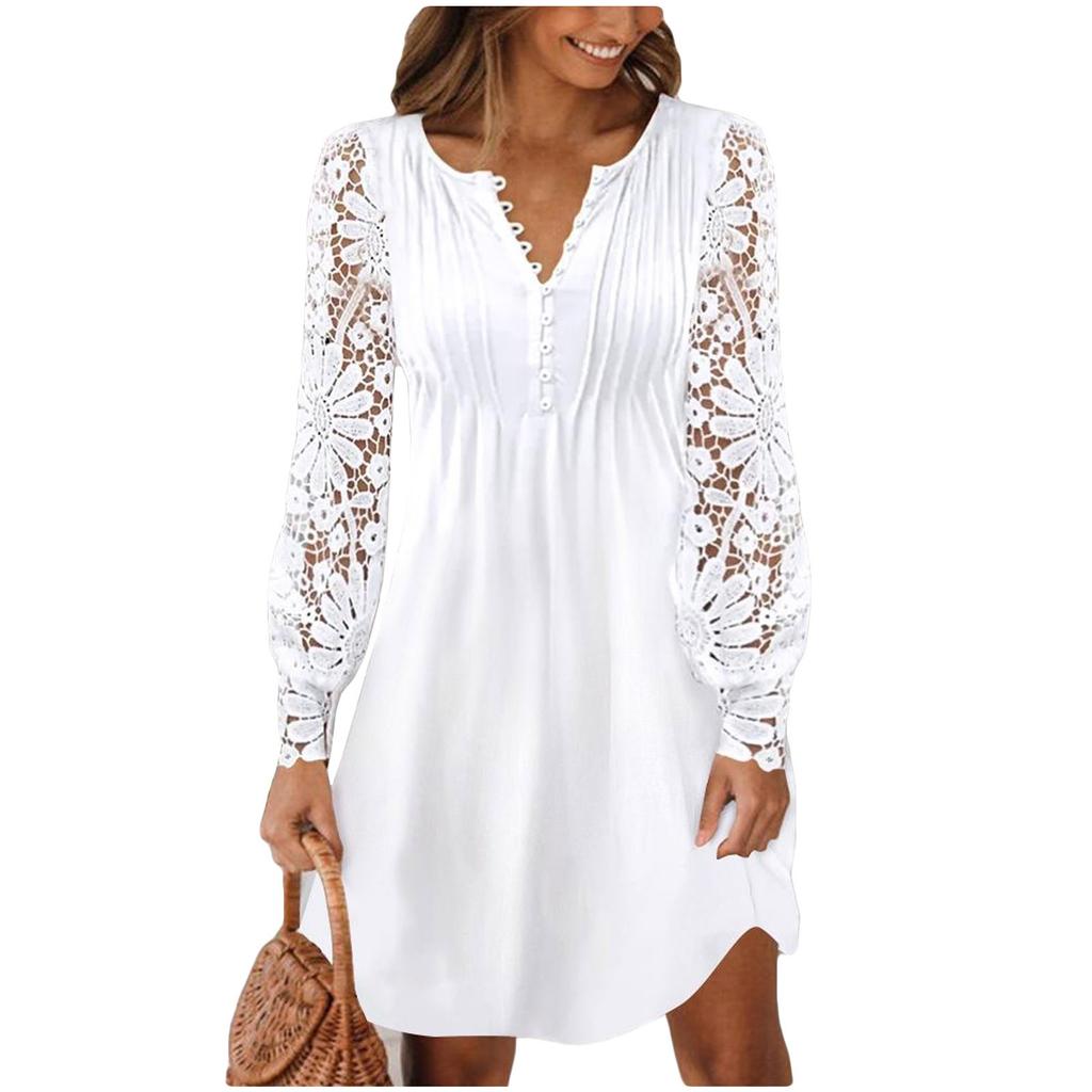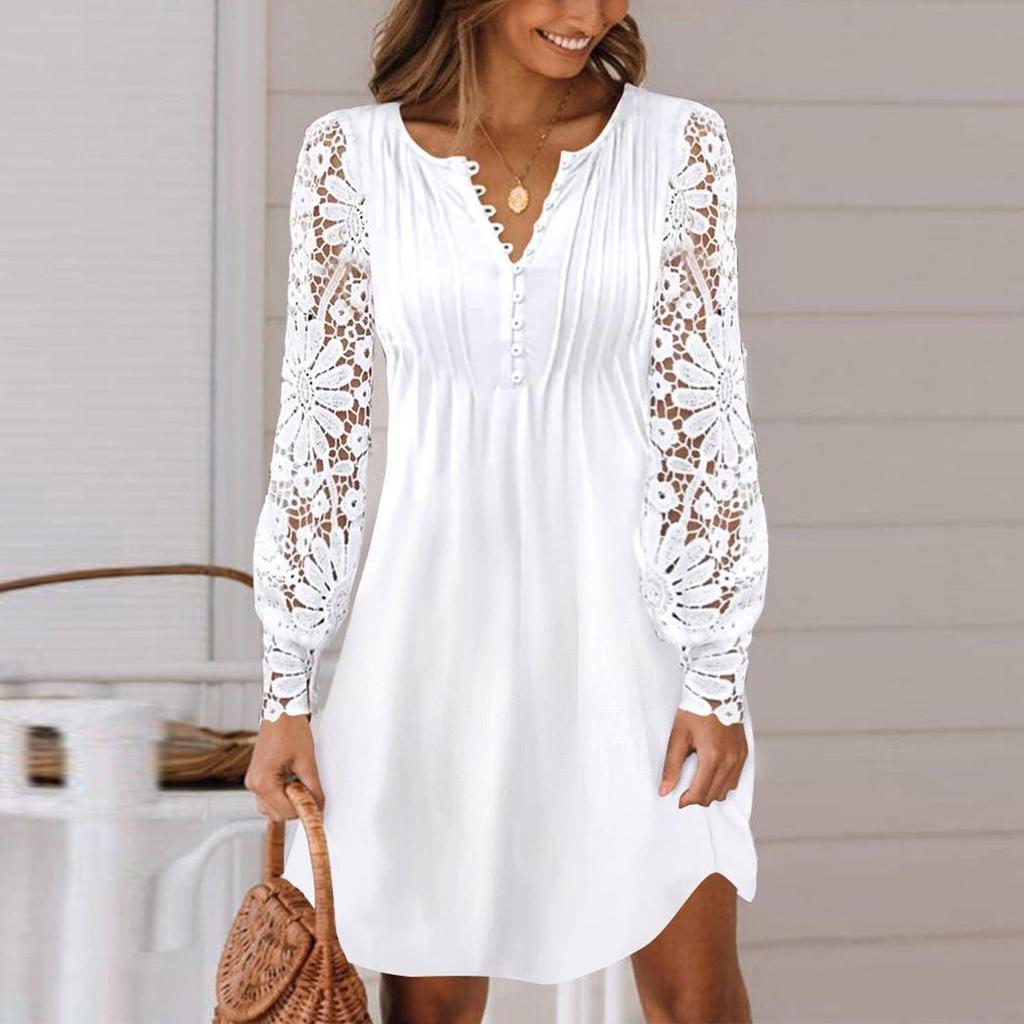 Женское кружевное платье с длинным рукавом, летнее платье, праздничное платье, платье на пуговицах с V-образным вырезом, платье