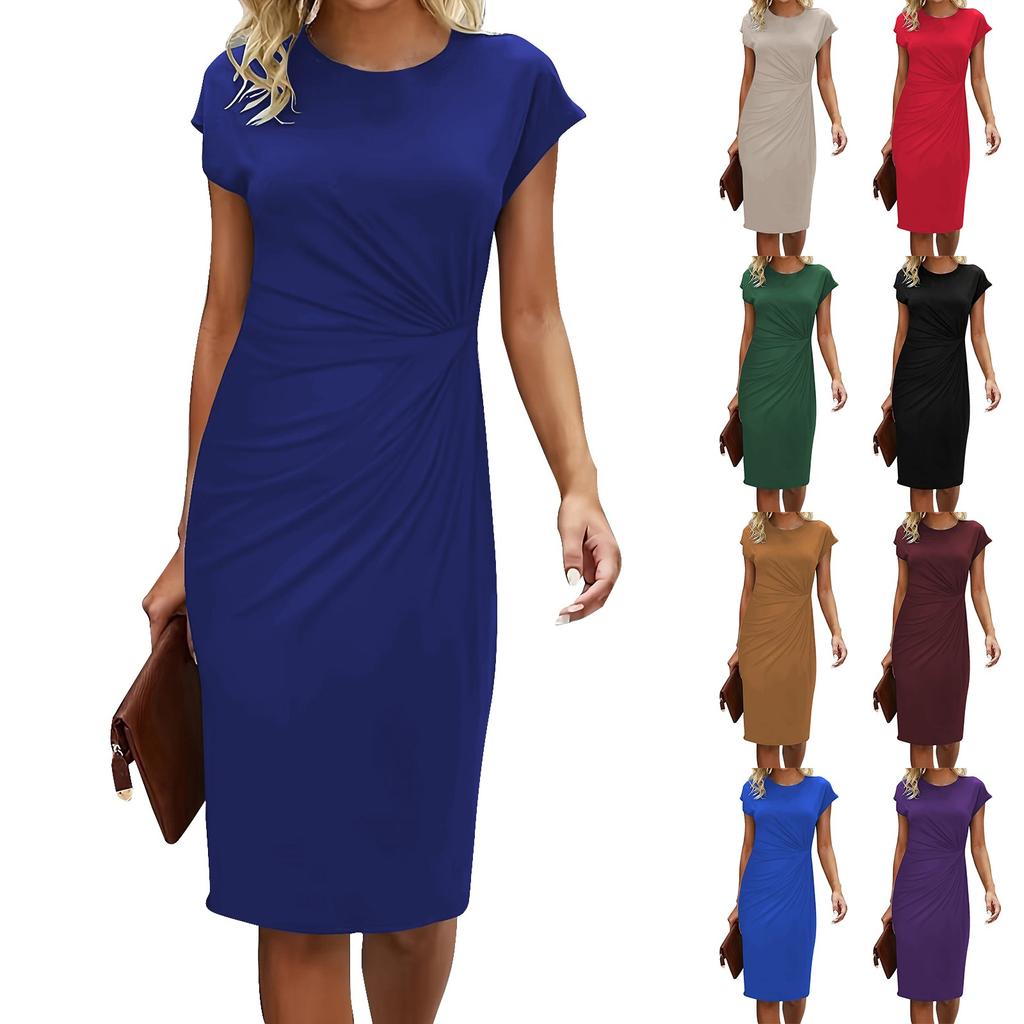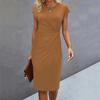 Женские модные свободные повседневные однотонные платья с круглым вырезом без рукавов в складку — купить товар онлайн с бесплатной доставкой по всему миру!