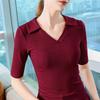 Футболка со средним рукавом и рукавом-пятью, верхняя часть с ключицами, белая футболка с воротником-поло и коротким рукавом