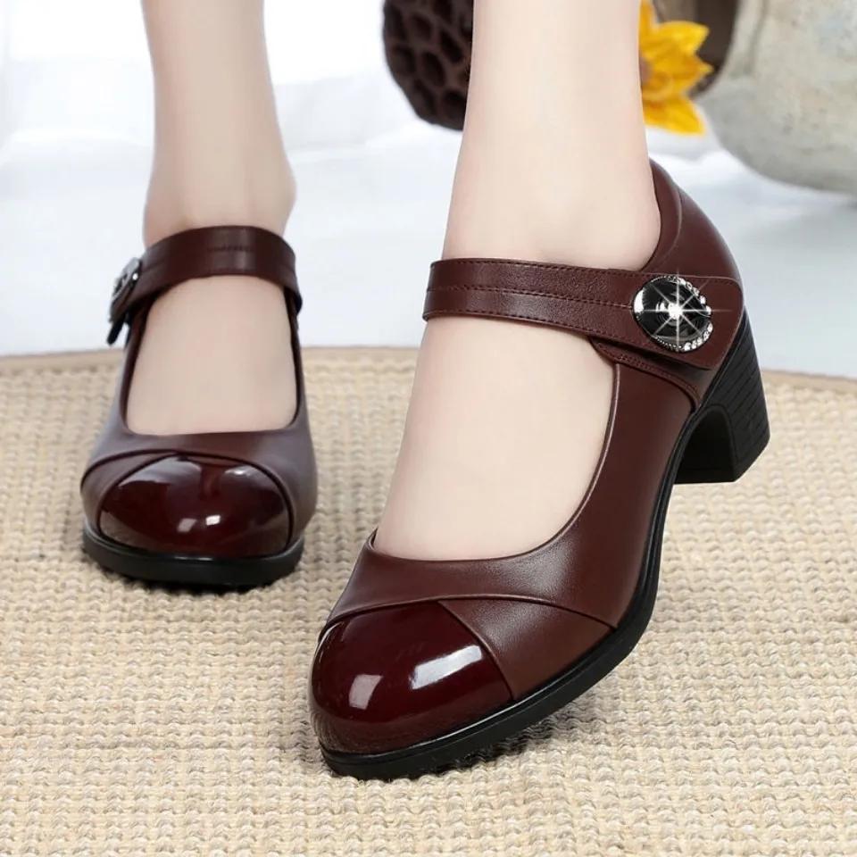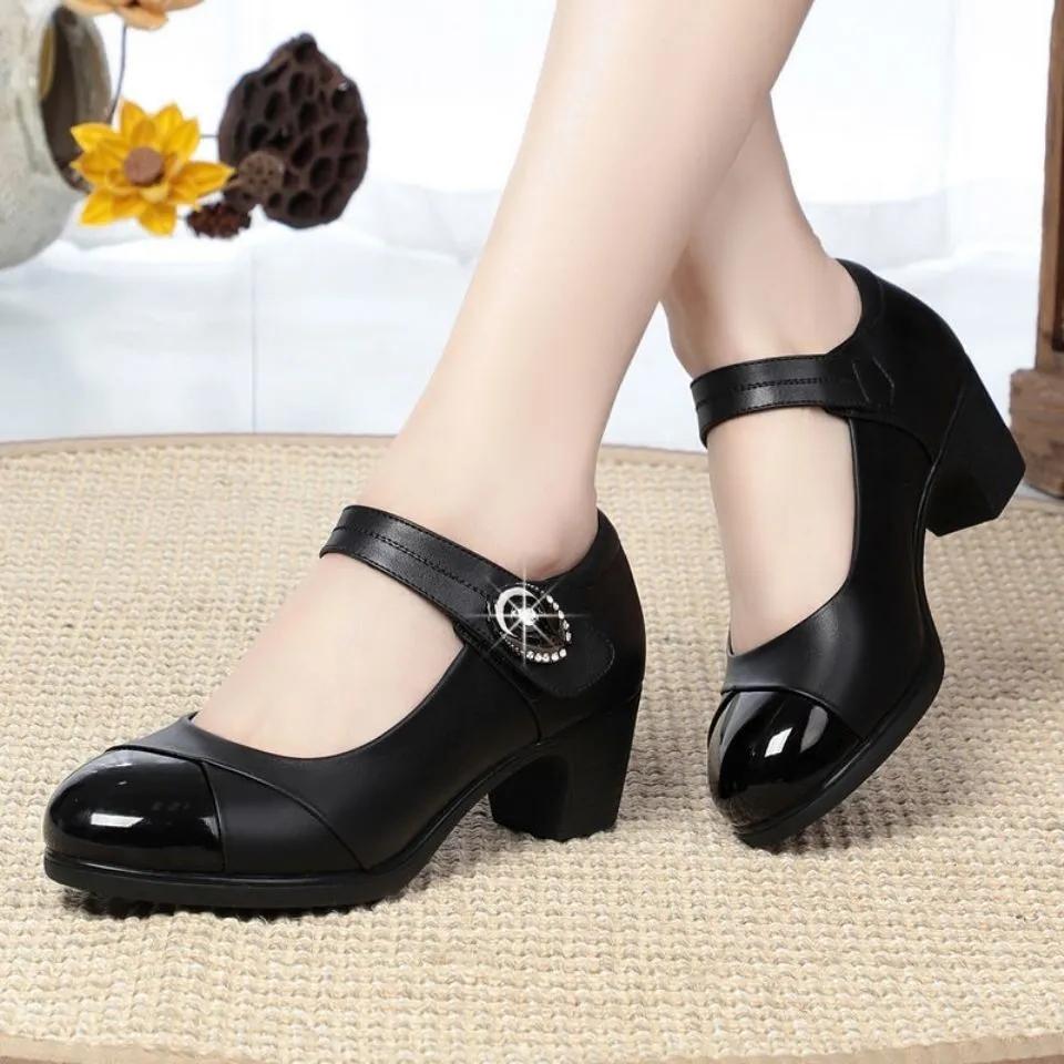 Обувь для мам. Женские весенние и осенние туфли на мягкой подошве. Универсальные танцевальные туфли на среднем каблуке и толстом каблуке.