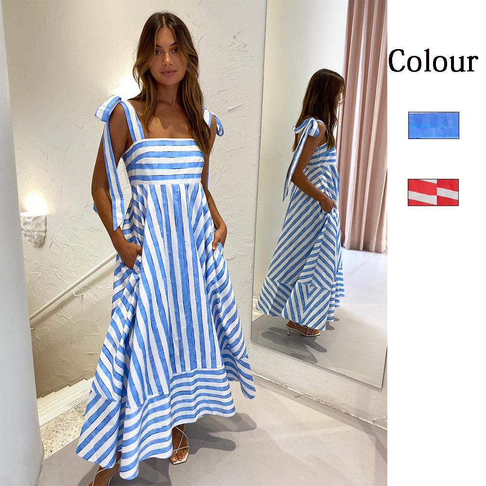 Женское весеннее платье-комбинация без рукавов с полосатым принтом и подтяжками, летнее повседневное платье А-силуэта с открытой спиной и высокой талией, большие свободные длинные платья S-XL