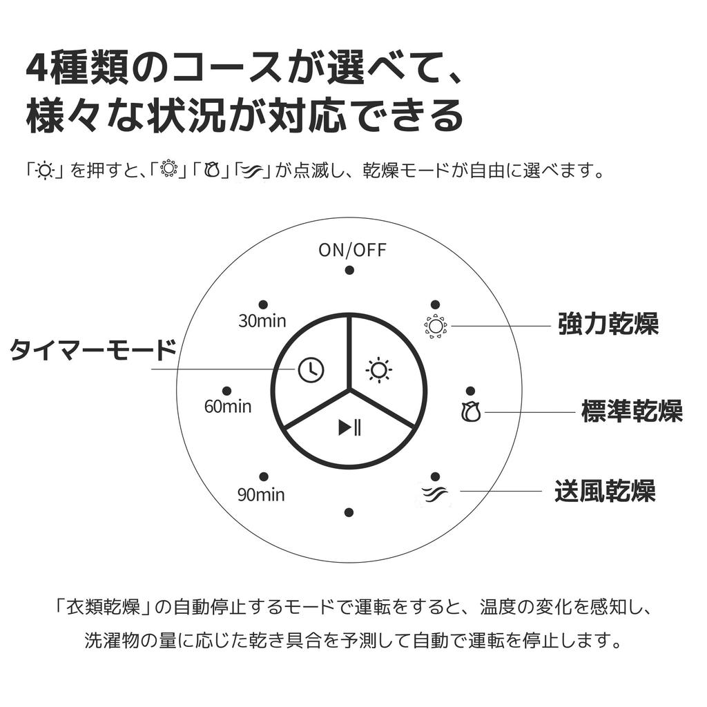 [3 программы сушки на выбор, с режимом таймера] Вы можете выбрать одну из 3 программ: «Сушка феном», «Стандартная автоматическая сушка» и «Мощная автоматическая сушка». В то же время, он также имеет функцию таймера.. Каждая программа учитывает различные потребности и обеспечивает настройки сушки, соответствующие состоянию и материалу вашего белья.