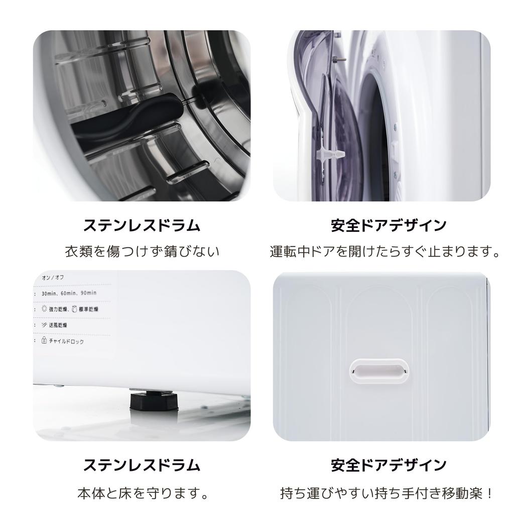[Компактный, экономит место, внимание к деталям] Рекомендуется для настенных, штабелируемых и отдельно стоящих моделей, когда нужно быстро высушить несколько предметов одежды или для тех, кто хочет сделать это легко, не беспокоясь о месте.. Барабан из нержавеющей стали не повредит вашу одежду и не ржавеет.. Ножки с защитой от царапин защищают основной блок и пол.. В комплекте есть ручка, благодаря которой его легко переносить! ●Расстояние сушилки от стены 15 см.. Используйте выхлопную трубу для отвода влаги наружу. -Если сушилка установлена в месте, где воздух может циркулировать, используйте вытяжную трубу.. - При использовании выхлопной трубы не превышайте 1,5 м.