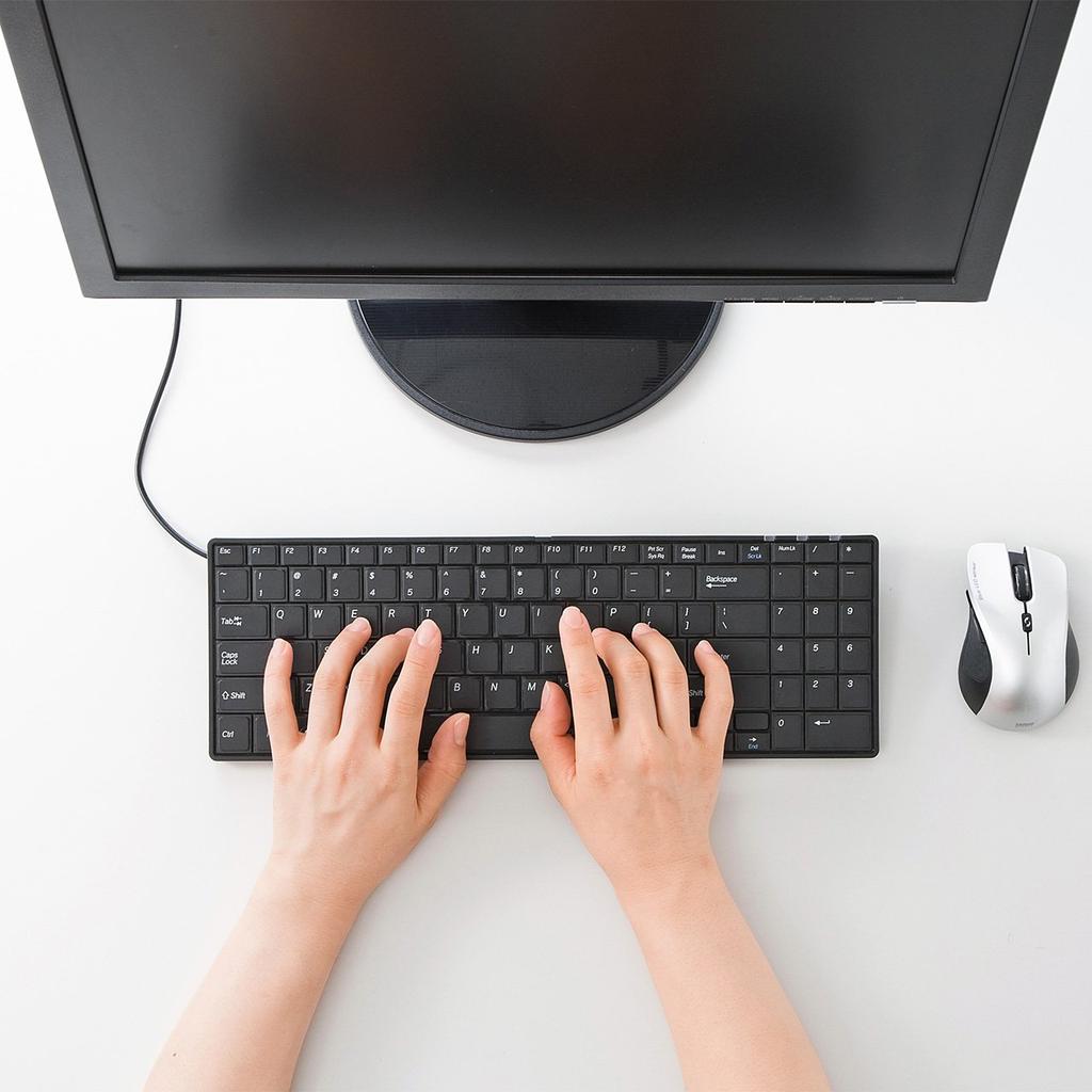 Тонкая USB-клавиатура Sanwa Supply с английской раскладкой и пантографической цифровой панелью, черная SKB-E2U