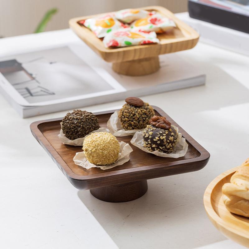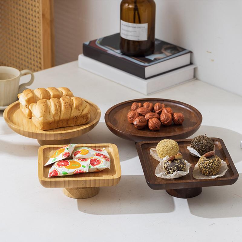 1шт бамбуковая тарелка для фруктов реквизит для фотосъемки деревянный поднос поднос для хранения высокий поднос ретро-десерт подставка для фруктов 2 цвета