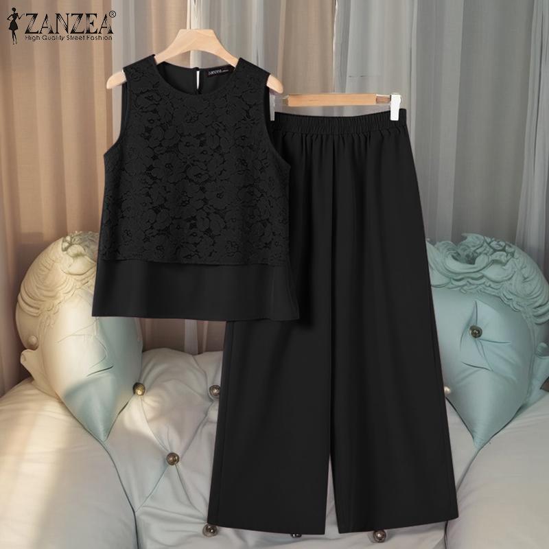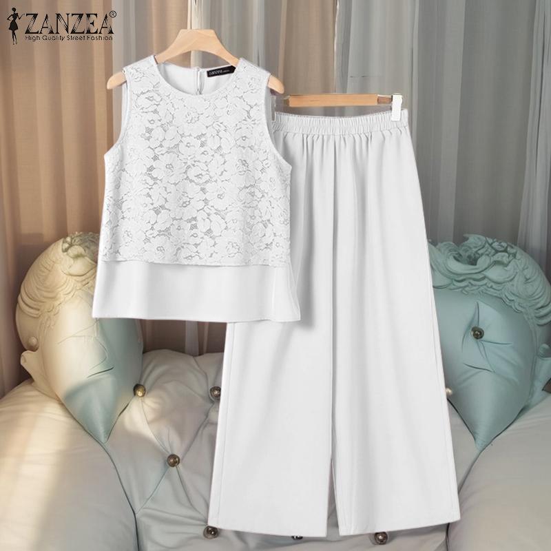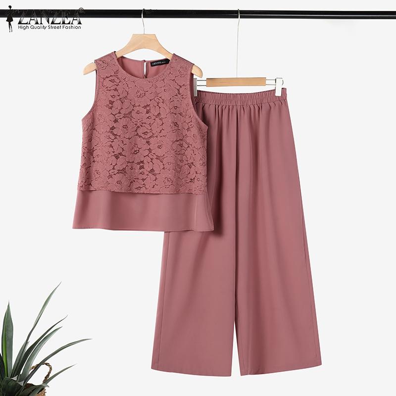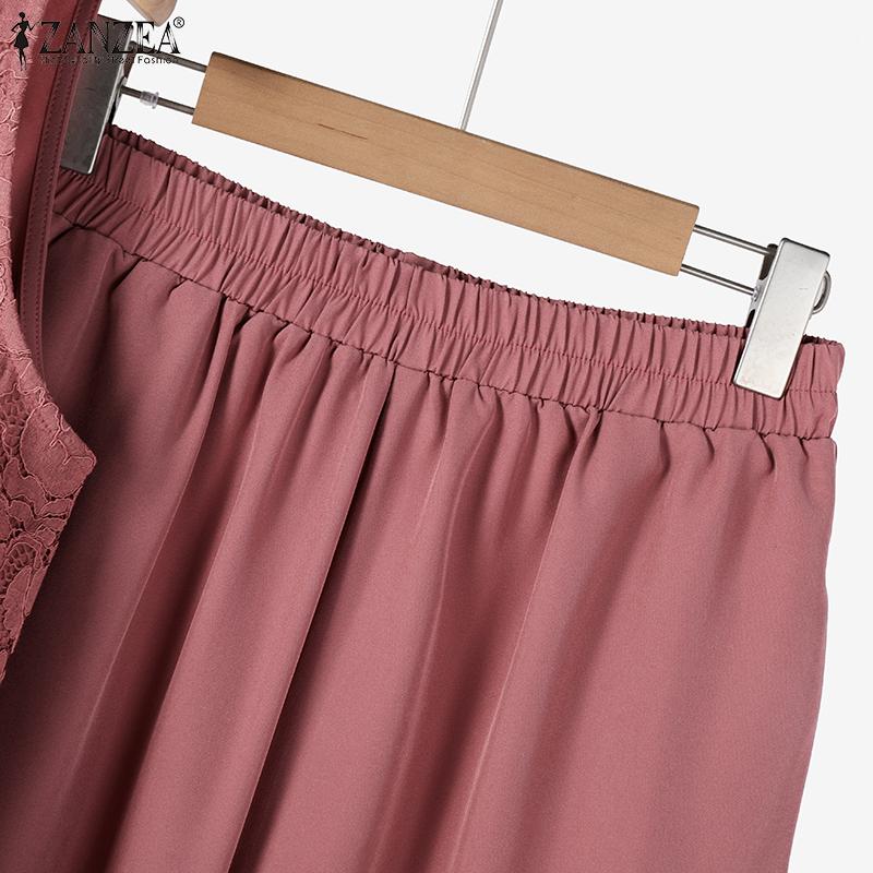 ZANZEA Женские кружевные топы и брюки в стиле пэчворк, летние комплекты из двух частей