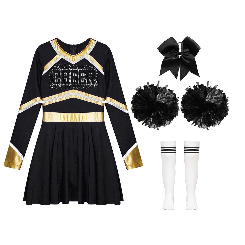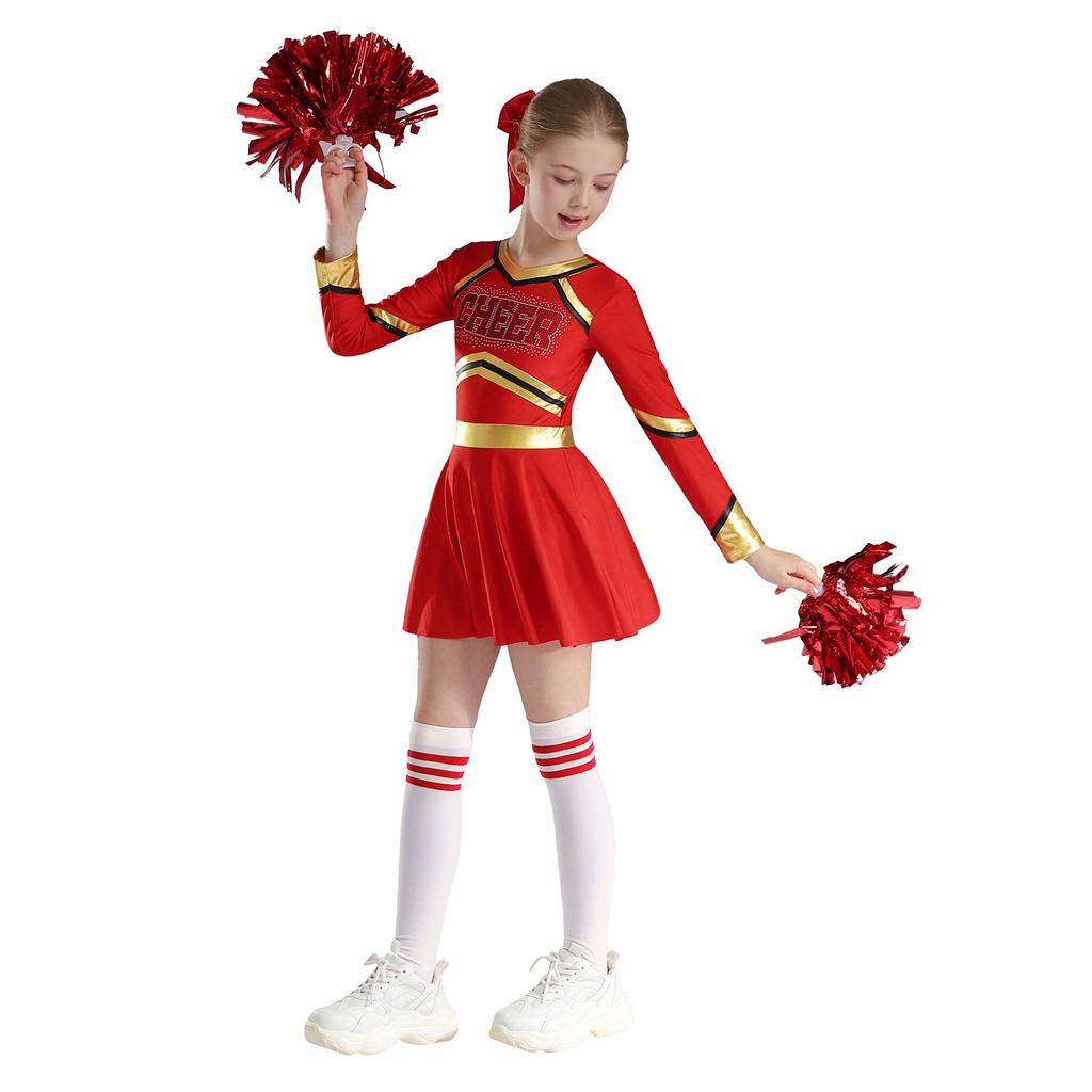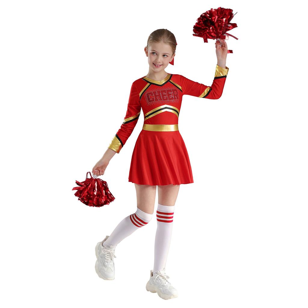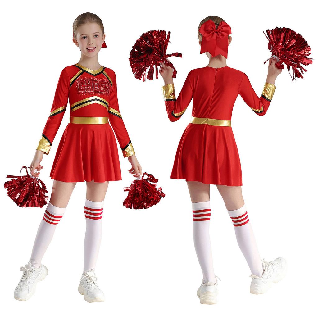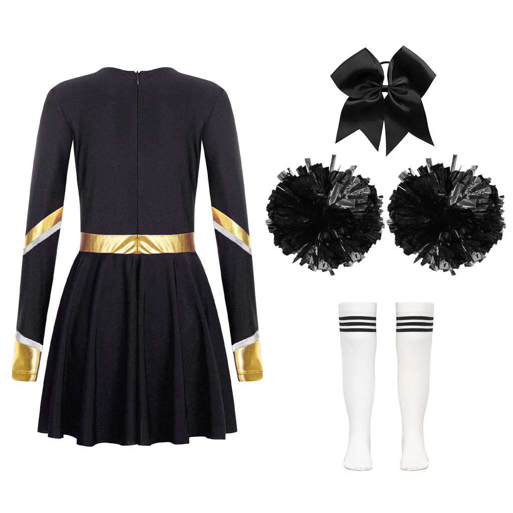Детский костюм для девочек для выступлений с чирлидингом, платье с длинным рукавом и принтом в виде букв, комплект танцевальной одежды