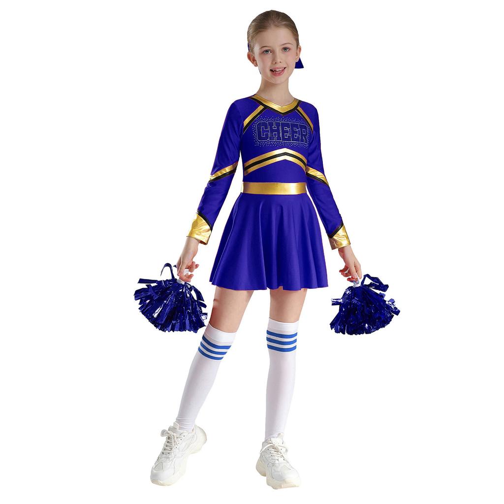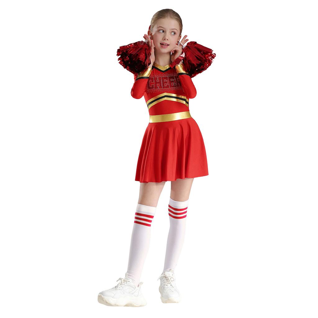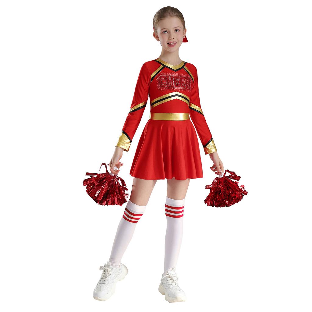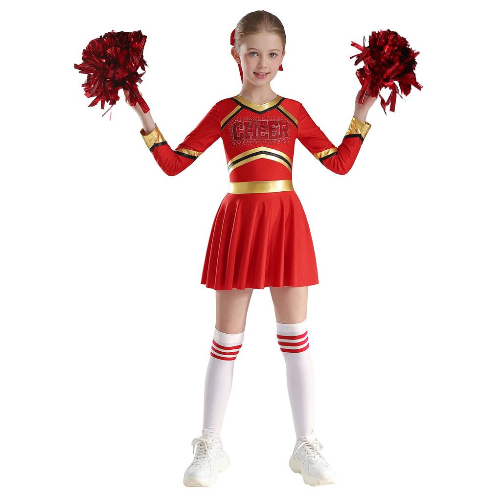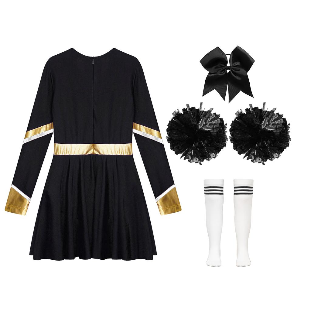 Детский костюм для девочек для выступлений с чирлидингом, платье с длинным рукавом и принтом в виде букв, комплект танцевальной одежды