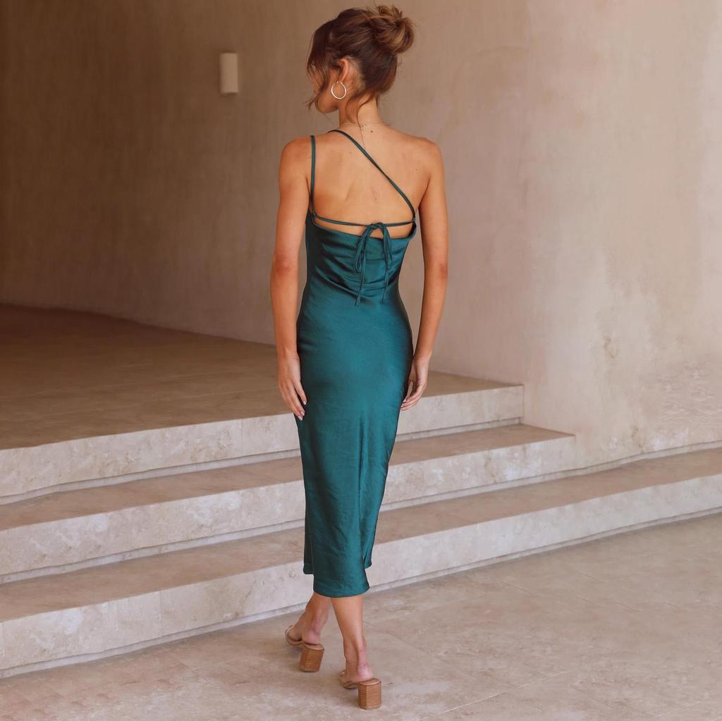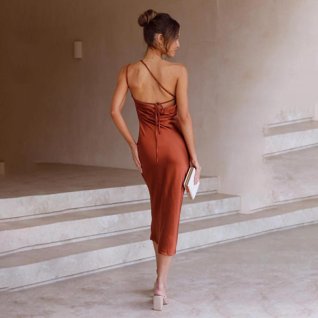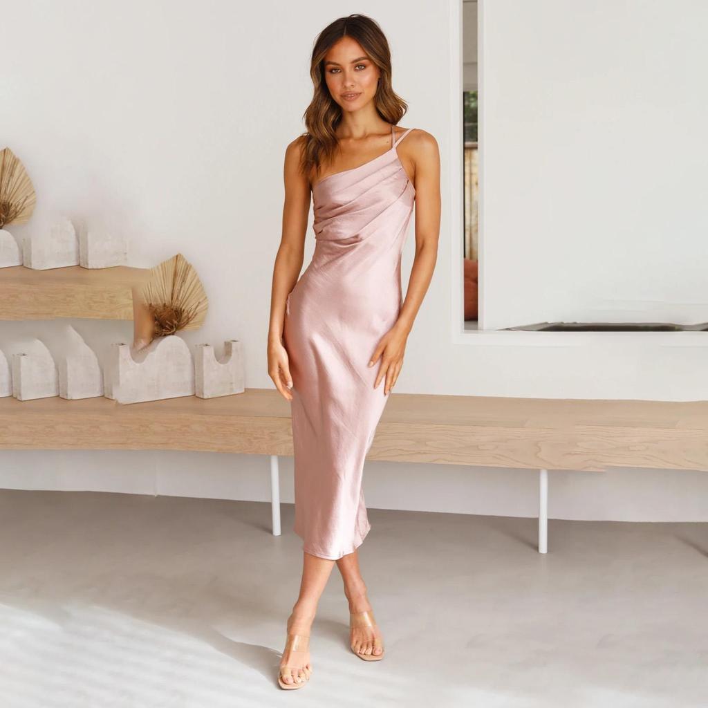 Женское весеннее платье без рукавов, однотонное, облегающее, с одним плечевым ремнем, летнее, повседневное, с открытой спиной, с высокой талией, длинное, S-XL