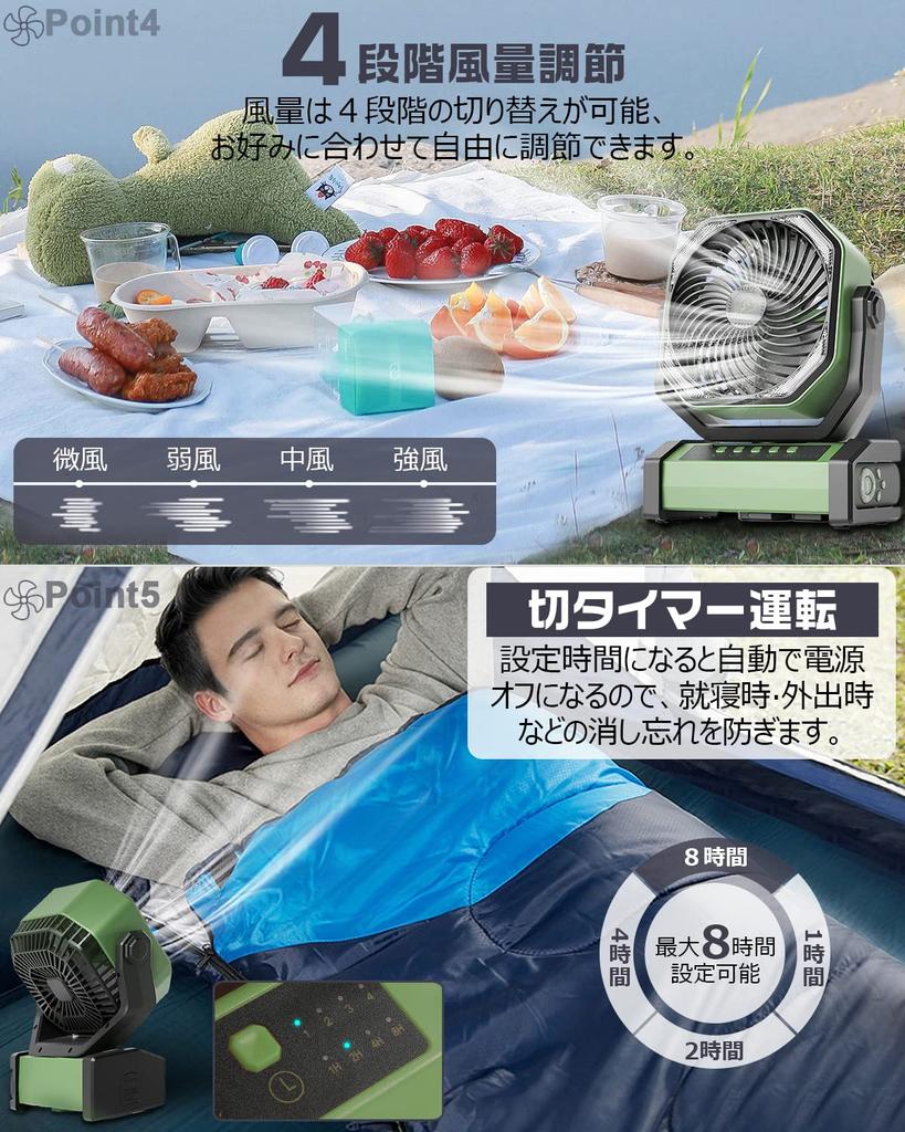 ❉ [Универсальный вентилятор, который можно использовать в любое время года] Поскольку он перезаряжаемый, вы можете переносить его и использовать в любом месте.. Несмотря на компактность и простоту использования, он оснащен удобными функциями, такими как автоматическое левое и правое колебание, таймер выключения, светодиодная подсветка и дистанционное управление.. Его можно использовать не только на открытом воздухе, но и для вентиляции помещений, при просмотре спортивных состязаний, в качестве настольного вентилятора для помещений, а также для предотвращения стихийных бедствий.. Очень удобно иметь такой!