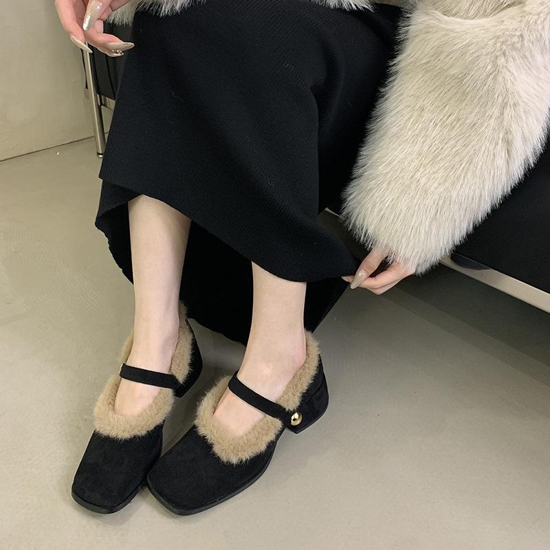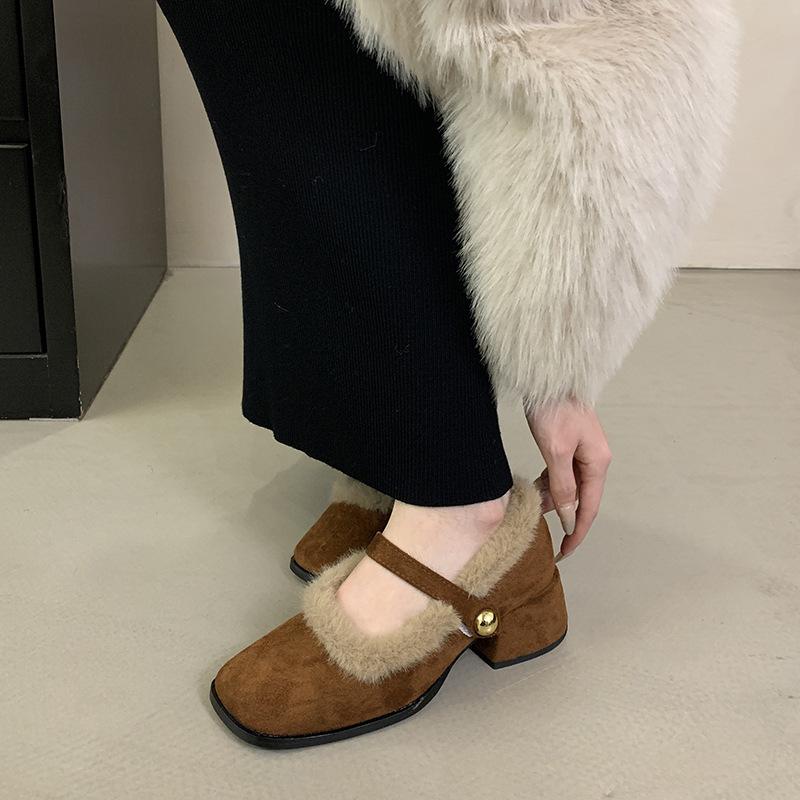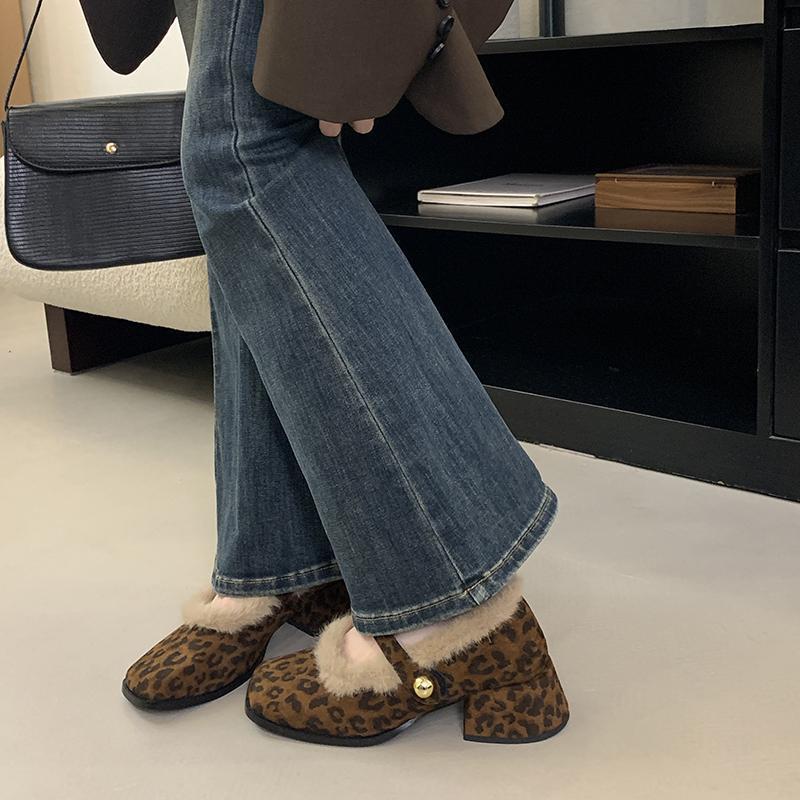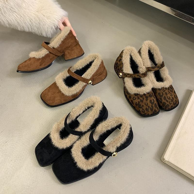 Туфли Мао Мао с квадратным носком женские 2024 зима новые товары с туфлями Мэри Джейн толстый каблук теплые одинарные туфли леопардовый принт