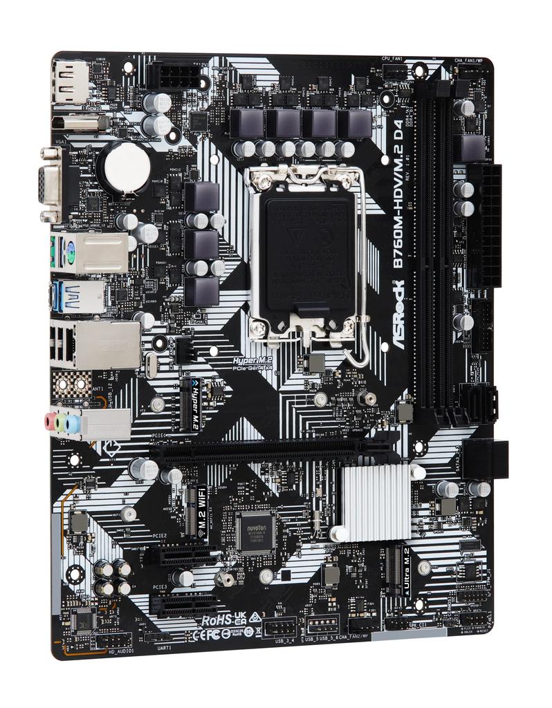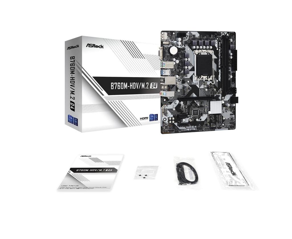 Материнская плата ASRock D4 совместима с процессорами Intel 12-го и 13-го поколений, чипсет B760, DDR4, Micro ATX, авторизованный дистрибьютор B760M-HDV/M.2 (LGA1700)