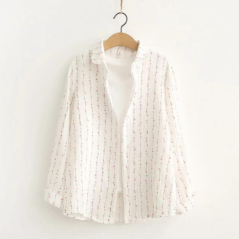 Осенняя двухслойная хлопковая пряжа с длинными рукавами для женщин, свободная художественная мелкая цветочная мягкая рубашка из хлопка, блузки и рубашки — купить товар онлайн с бесплатной доставкой до всему миру!