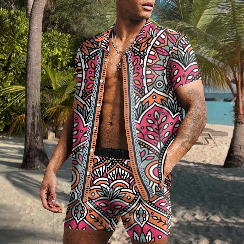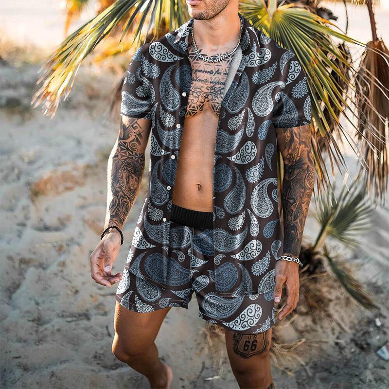 Летняя мужская повседневная свободная рубашка с цифровым принтом, пляжный комплект, рубашка и шорты, мужские