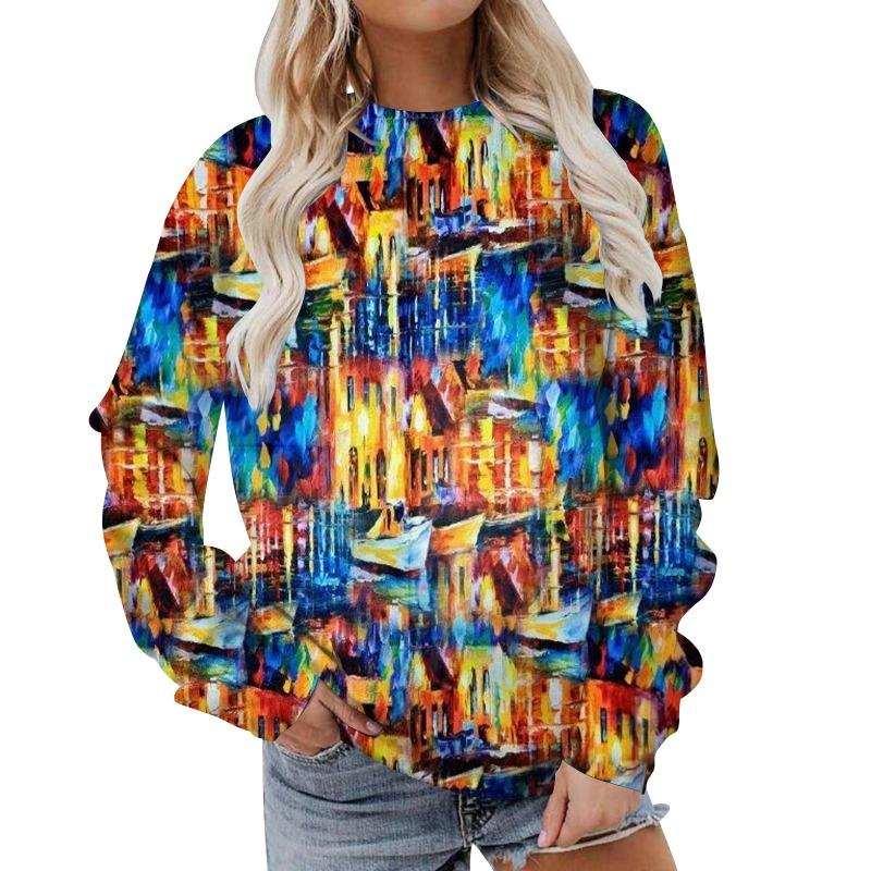 Осенние женские модные трендовые брендовые свободные повседневные футболки с круглым вырезом и длинными рукавами для женщин