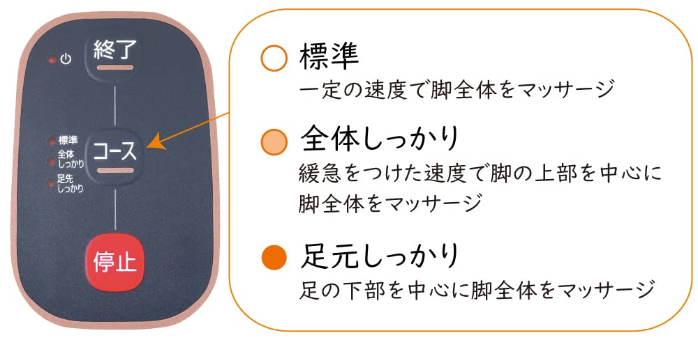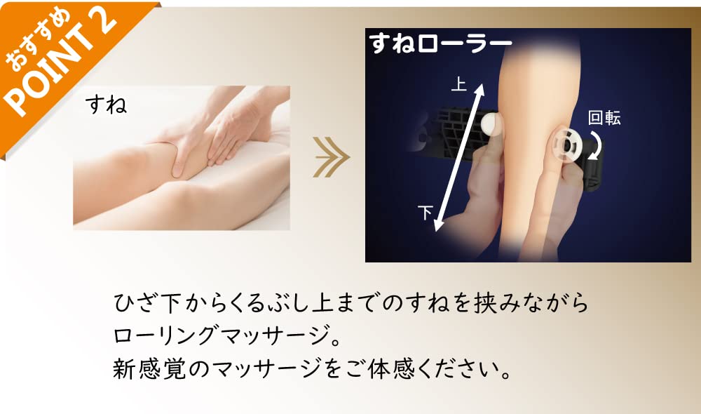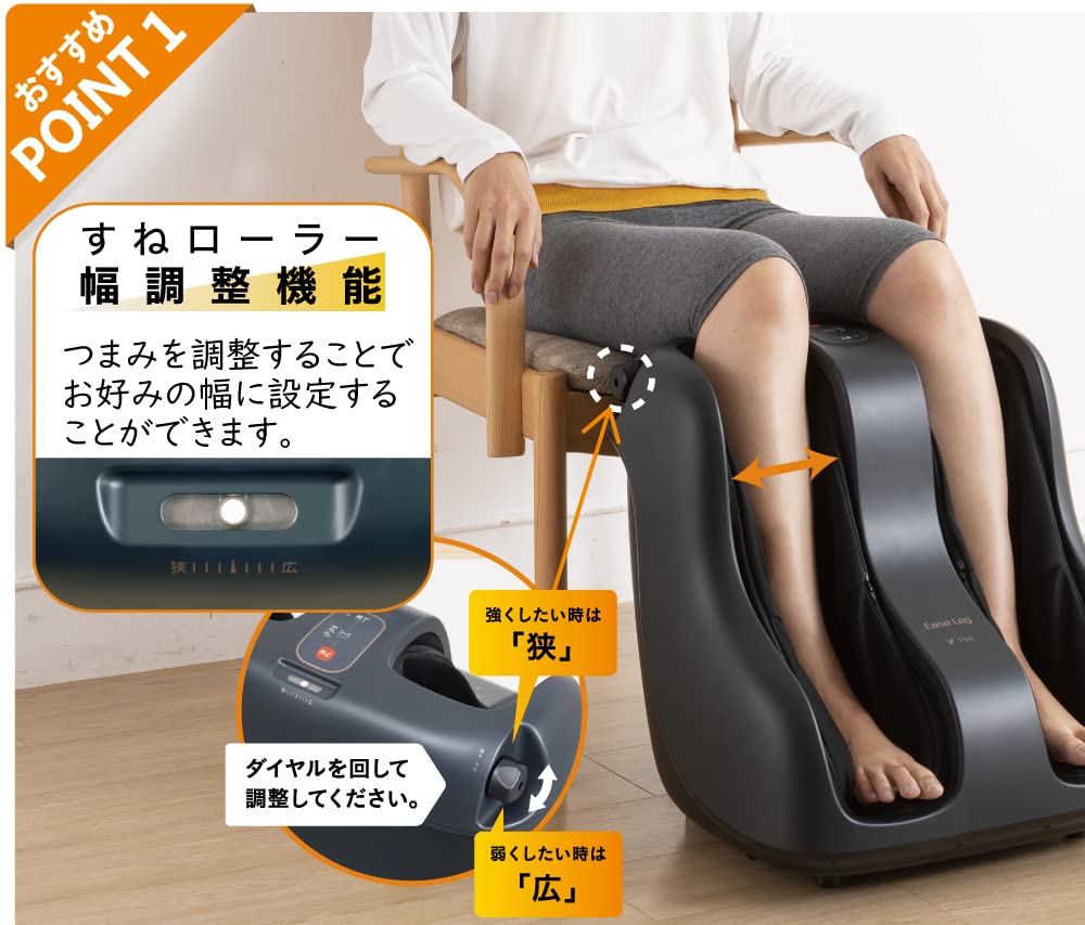 ■ Прокатывающий массаж с пощипыванием голени от колена до лодыжки.. [Голень] Ширину ролика голени можно отрегулировать, повернув диск.. [Икра] Прокатывающий массаж вдоль линии икры с помощью ролика, который вращается вокруг задней части икры.. [Подъем стопы] Твердый расслабляющий массаж, как будто сжимающий подъем стопы.. [Подошвы и пальцы ног] Массаж пальцев ног и пяток с помощью больших и маленьких выступов с использованием вращающегося постукивающего ролика ■Три курса на выбор: [Стандарт] Массируйте всю ногу с постоянной скоростью.. [Вся нога твердая] Массируйте всю ногу, уделяя особое внимание верхней части ноги, на умеренной скорости.. [Твердая стопа] Помассируйте всю ногу, уделяя особое внимание подошве стопы.. ■Если вы используете его в течение 30 минут в день, ваш ежемесячный счет за электроэнергию составит около 24 иен.. (Рассчитано на основе удельной цены за электроэнергию 31 иена/кВтч.) ■С 10-минутным автоматическим таймером