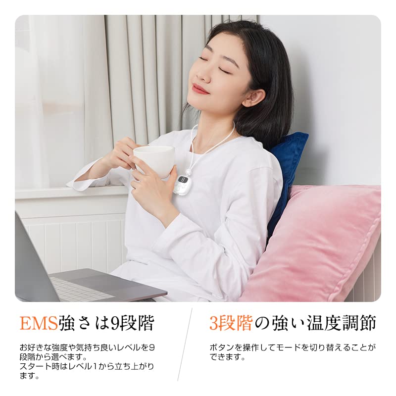 [9 уровней с различными режимами работы] 9 уровней силы EMS, 3 уровня сильного контроля температуры, и вы можете настроить уровень по своему усмотрению. Вы можете переключать режимы, управляя кнопками. Вы можете выбрать интенсивность и уровень ощущений, которые вам нравятся.. В начале вы подниметесь с уровня 1.