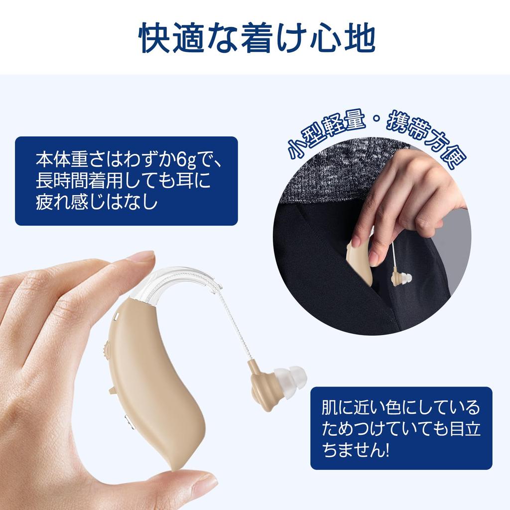 [Маленький, легкий и удобный для ношения] Устройство весит всего 6 г, что снижает нагрузку на уши. Оно также легкое и удобное для ношения, поэтому вы можете наслаждаться комфортным ощущением даже при длительном ношении.. Корпус телесного цвета делает его незаметным даже при ношении в ухе.