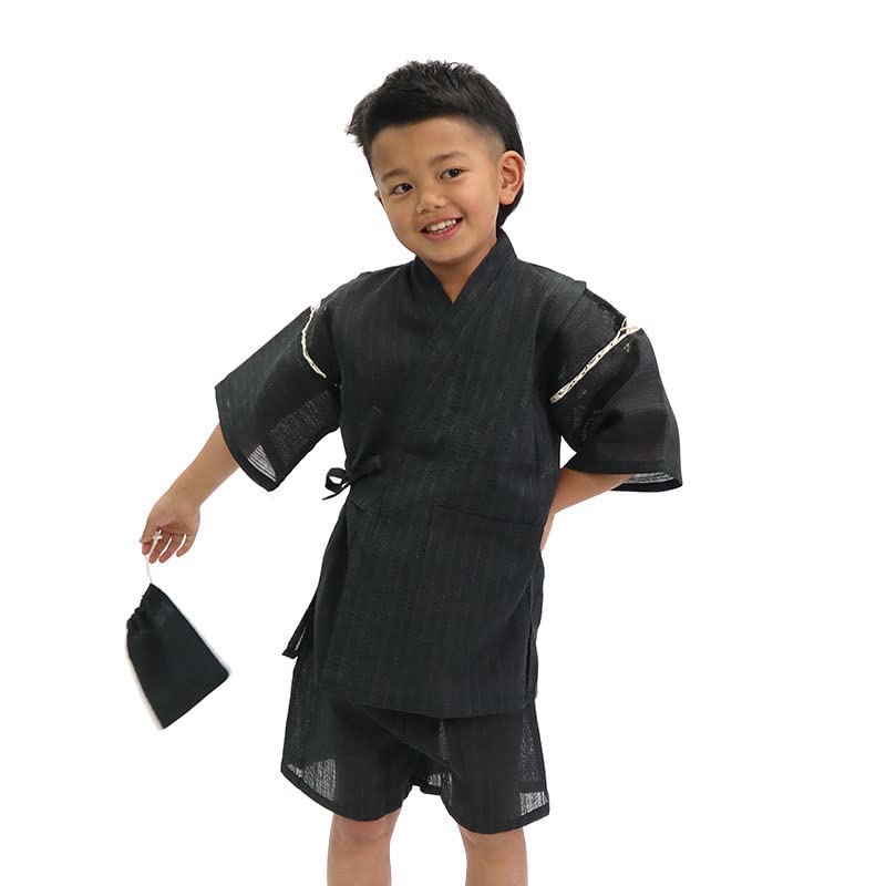 Komeshichi Jinbei Shijira Weave Linen Blend Drawstring Included Boys Kids Clothes [Yoneshichi] Childrens [Black Striped/130 Size]
