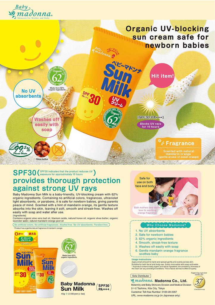 Это органический УФ-крем, который можно использовать новорожденным, он содержит 62% органических ингредиентов.. Не содержит красителей, отдушек, поглотителей УФ-излучения и парабенов, поэтому вы можете быть уверены.