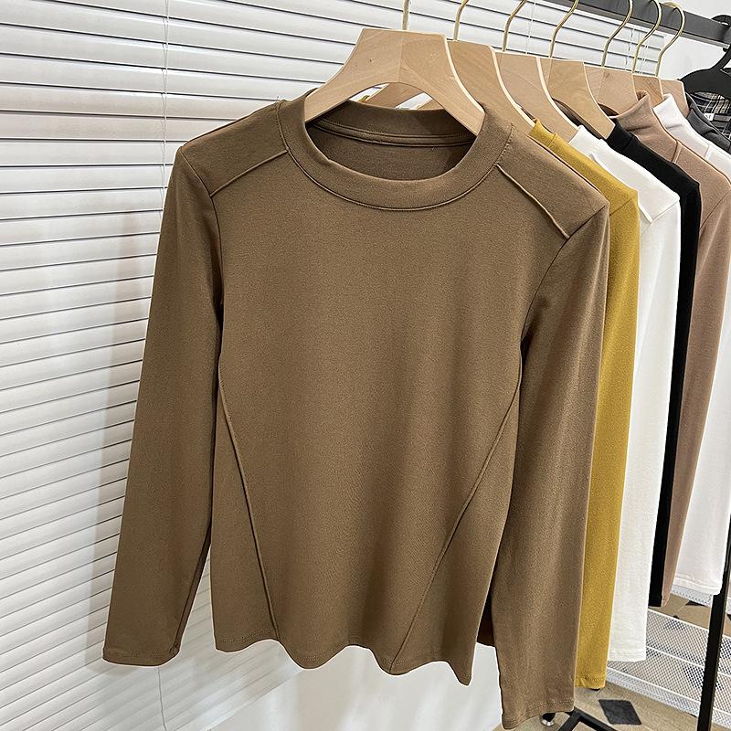 Круглая горловина однотонная футболка для женщин весна-осень новый стиль модал внутренняя нижняя часть рубашки тонкий топ с длинными рукавами — купить товар онлайн с бесплатной доставкой по всему миру!