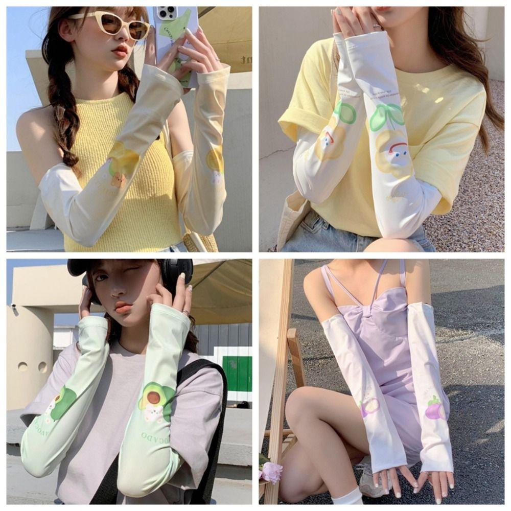 Рукава с фруктовым узором для защиты от солнца, рукава из ледяного шелка против солнечных ожогов, милые нарукавники, лето — купить товар онлайн с бесплатной доставкой до всему миру!