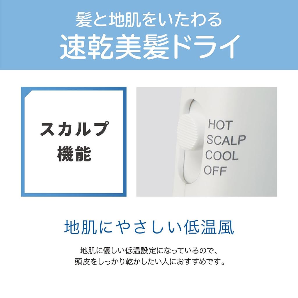 Функция кожи головы: Низкая температура оказывает щадящее воздействие на кожу головы, поэтому ее рекомендуется использовать, когда вы хотите тщательно высушить кожу головы.