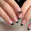 24pcs Manicure Fake Nials Press on Nails Black Edge Short Almond French False Nails