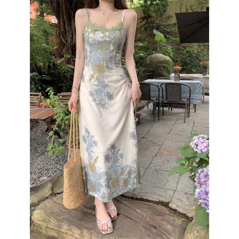 Платье-слинг Pure Desire Style с кружевной строчкой и принтом, женское летнее новое французское элегантное модное облегающее длинное платье, трендовое — купить товар онлайн с бесплатной доставкой по всему миру!