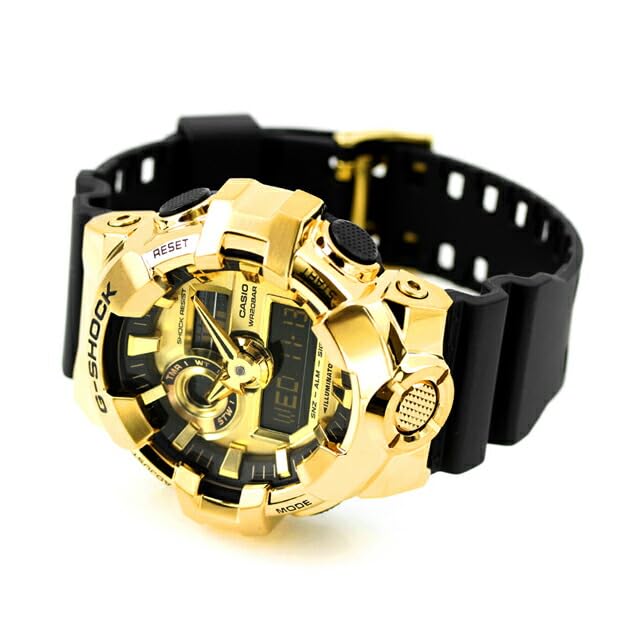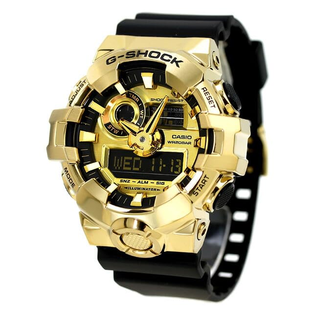 Casio G-Shock Analog Digital 700 Series Quartz Men's Watches GM-700G-9ADR CASIO G-SHOCK ANALOG-DIGITAL 700 SERIES Ana-Digi Black Gold ◆Из прочных часов G-SHOCK, которые продолжали развиваться в погоне за ненасытной прочностью с момента их выпуска в 1983 году, серия GM-700, крупногабаритная цифро-аналоговая комбинация, которая популярна в основном за рубежом.. Простая в использовании кнопка на передней панели позволяет включить светодиодную подсветку, что делает эту модель хорошо заметной ночью или в темноте.. Имеет аналогово-цифровой комбинированный циферблат с ощущением глубины. Такие детали, как прочные и толстые большие часовая и минутная стрелки, а также трехмерные индексы, делают его выделяющимся.. Номер отечественной модели: ГМ-700Г-9АJF