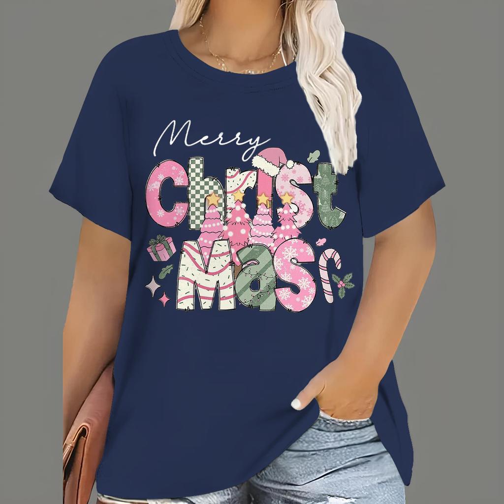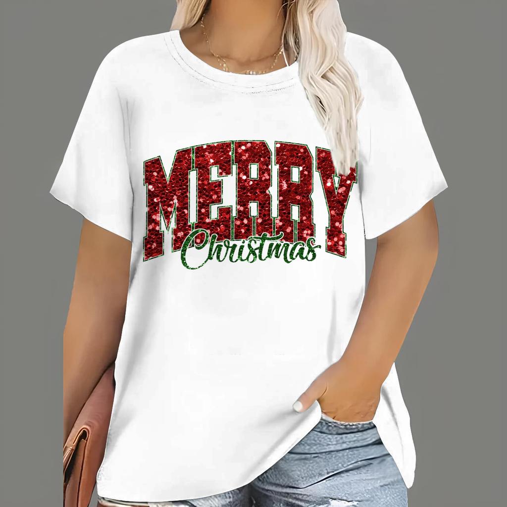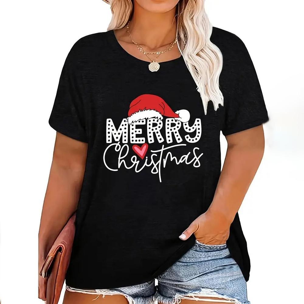 Большие размеры 7XL Рождественские футболки Женские топы с принтом Санта-Клауса из мультфильмов Футболки с коротким рукавом и круглым вырезом Повседневная одежда для вечеринок Женские топы больших размеров