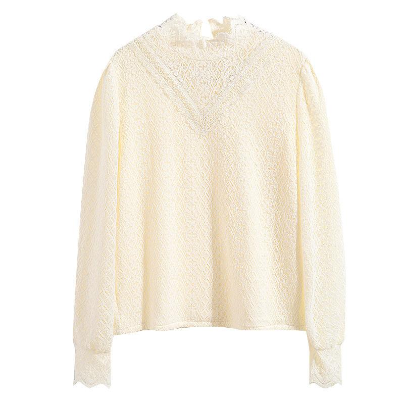 Рубашка на кружевной основе для женщин, новая осенне-зимняя, рукава-фонарики, уникальная и неповторимая верхняя половина рубашки с воротником-стойкой