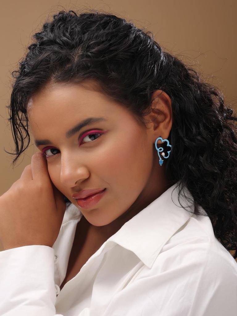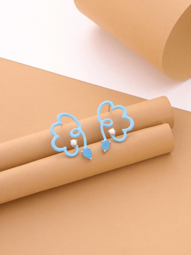 Игривые и задорные серьги-пусеты из стерлингового серебра 925 пробы с синей эмалью, украшенные голубым халцедоном, с цветочным дизайном для женщин