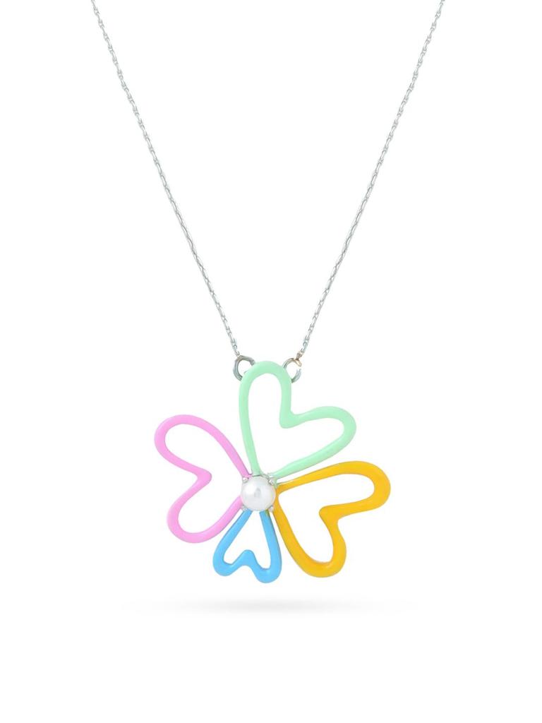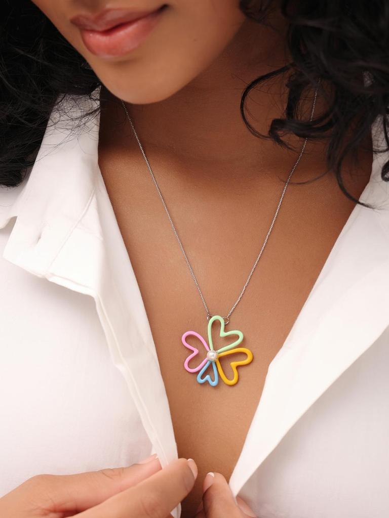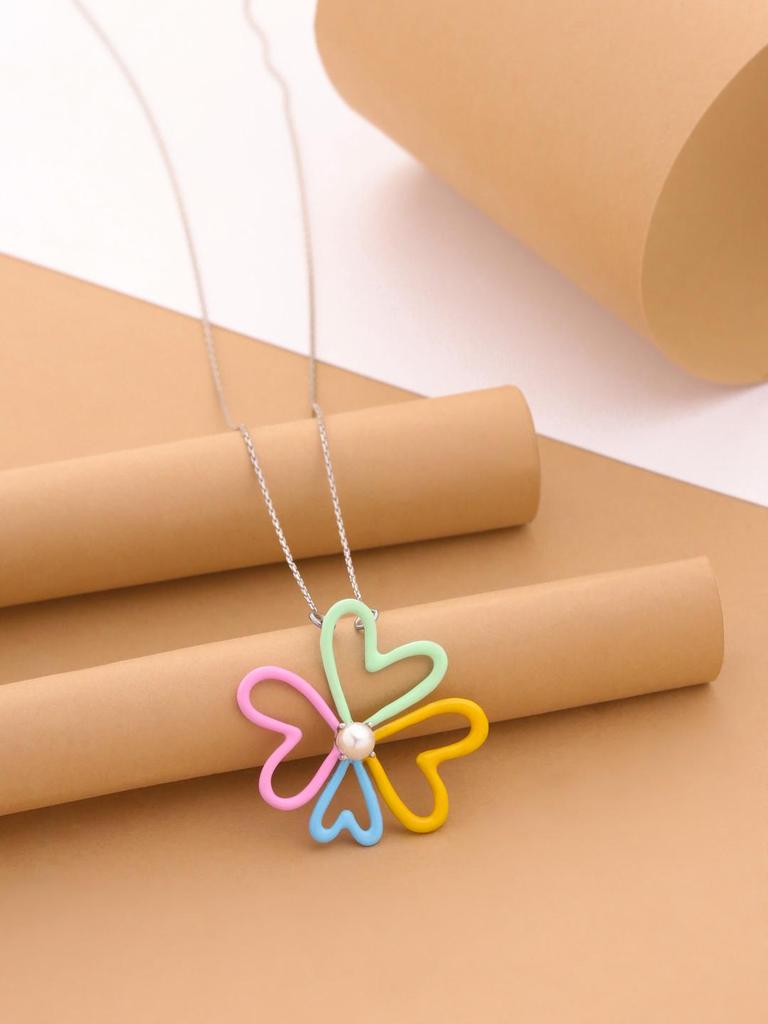 Озорной и энергичный кулон-подвеска из стерлингового серебра 925 пробы с разноцветной эмалью и жемчугом, цветочный дизайн, с цепочкой для женщин