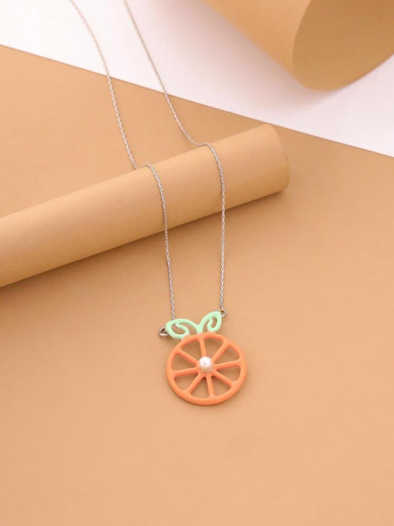Озорной и задорный стерлинговое серебро 925 пробы, оранжевая и зеленая эмаль, усыпанный жемчугом, оранжевый кулон с цепочкой для женщин