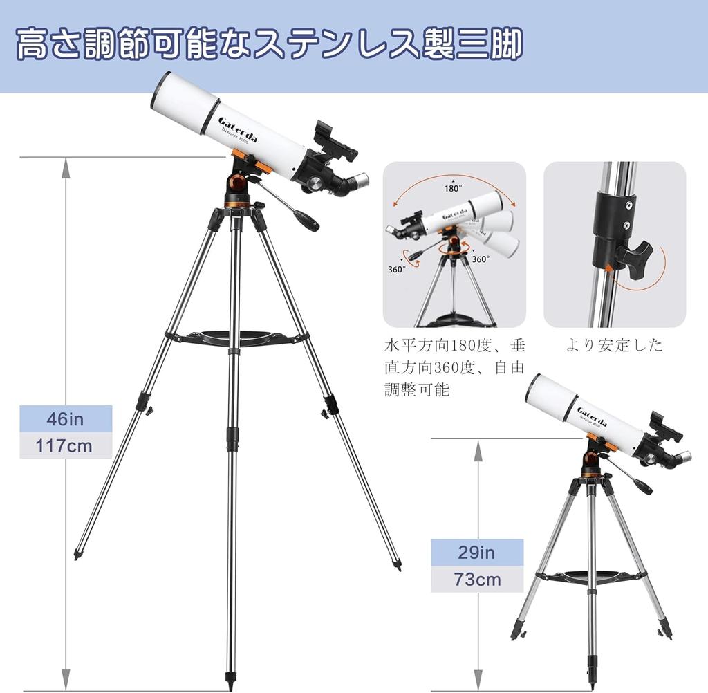 【Регулируемый по высоте штатив и адаптер для смартфона】Этот телескоп для взрослых поставляется с полноразмерным регулируемым штативом из нержавеющей стали, который можно регулировать по высоте и углу.. Он имеет альтазимутальный регулятор и ручку панорамирования для плавного и точного наведения, что очень удобно.. Вы можете использовать адаптер для смартфона, чтобы снимать фотографии и видео и делиться ими с семьей и друзьями.
