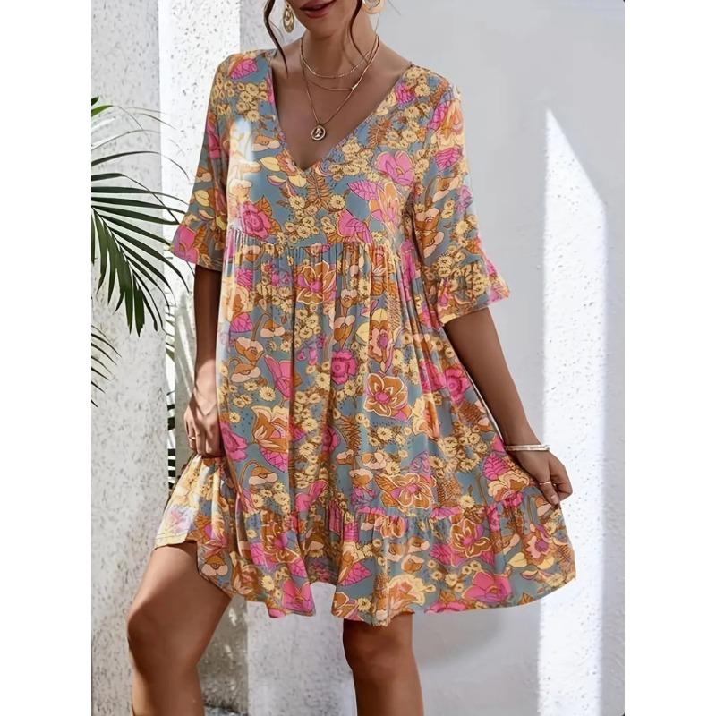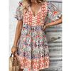Женское повседневное летнее платье в стиле бохо с V-образным вырезом и цветочным принтом — купить товар онлайн с бесплатной доставкой до всему миру!
