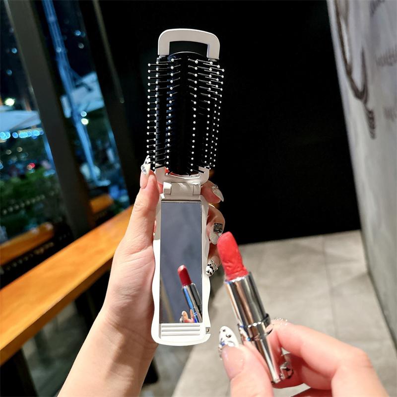 Печать Тюльпан Складная Расческа-подушка безопасности Портативная Портативная Массажная расческа-подушка безопасности Женская Специальная Расческа 2-в-1 с зеркалом для макияжа