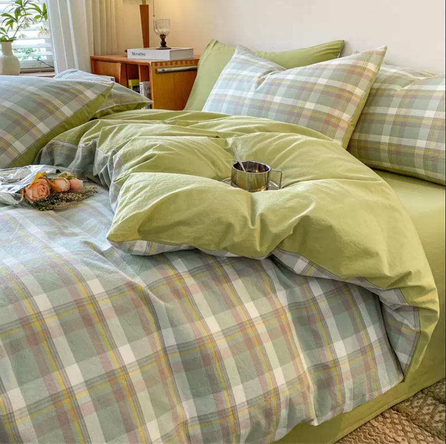 Пододеяльник и 2 наволочки, 100% хлопок, мультяшный клетчатый набивной постельное белье, двуспальная кровать, размер «king-size», 24 размера, комплект постельного белья для дома