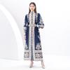 Весна-лето Женские платья больших размеров с винтажным дворцовым принтом, однобортные, длинные, макси, свободные, для праздников, с поясом