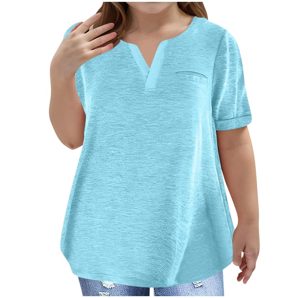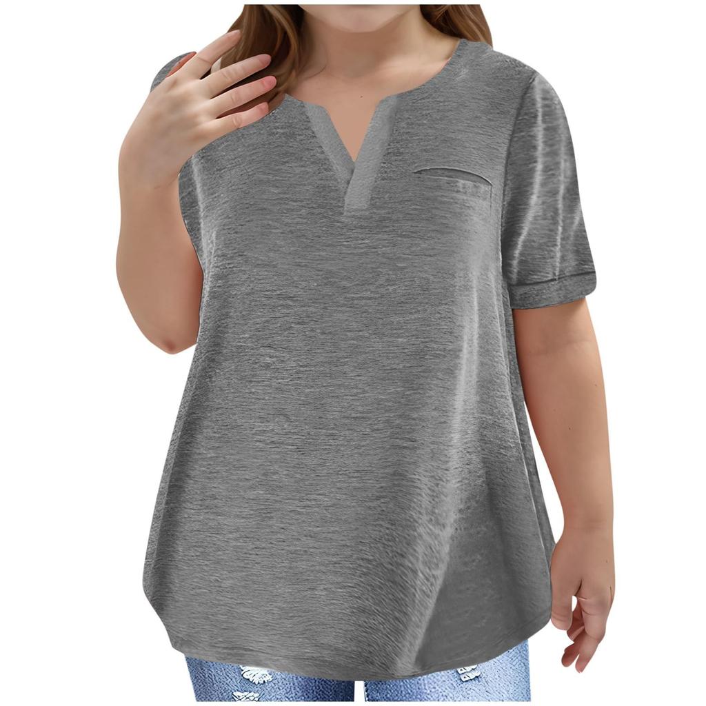 Футболка большого размера для девочек, повседневная, с V-образным вырезом и коротким рукавом, с карманом