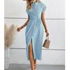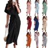 Женское свободное однотонное платье с высокой талией и короткими рукавами на пуговицах — купить товар онлайн с бесплатной доставкой по всему миру!