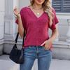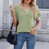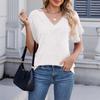 Женская мода повседневная футболка с коротким рукавом и V-образным вырезом, однотонная, базовая текстура