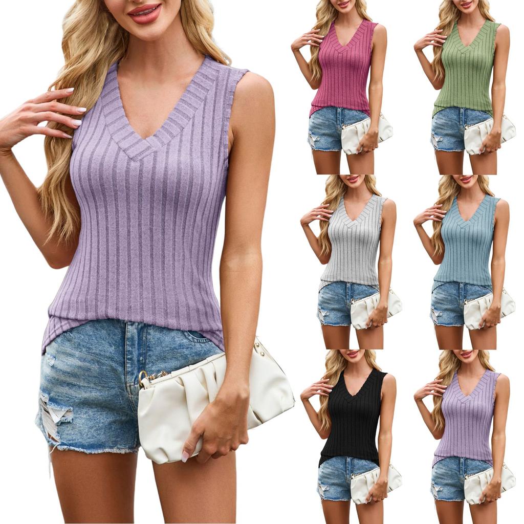 Женский трикотажный свитер без рукавов с большим V-образным вырезом в однотонную полоску — купить товар онлайн с бесплатной доставкой до всему миру!