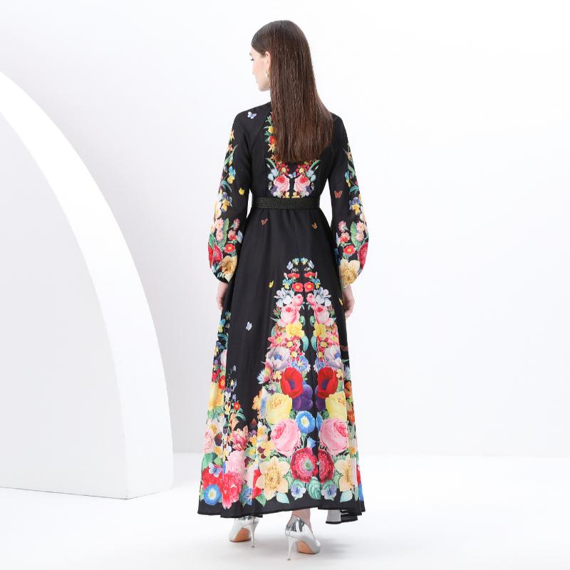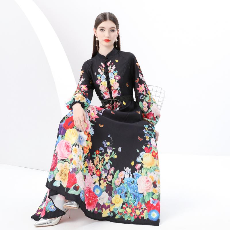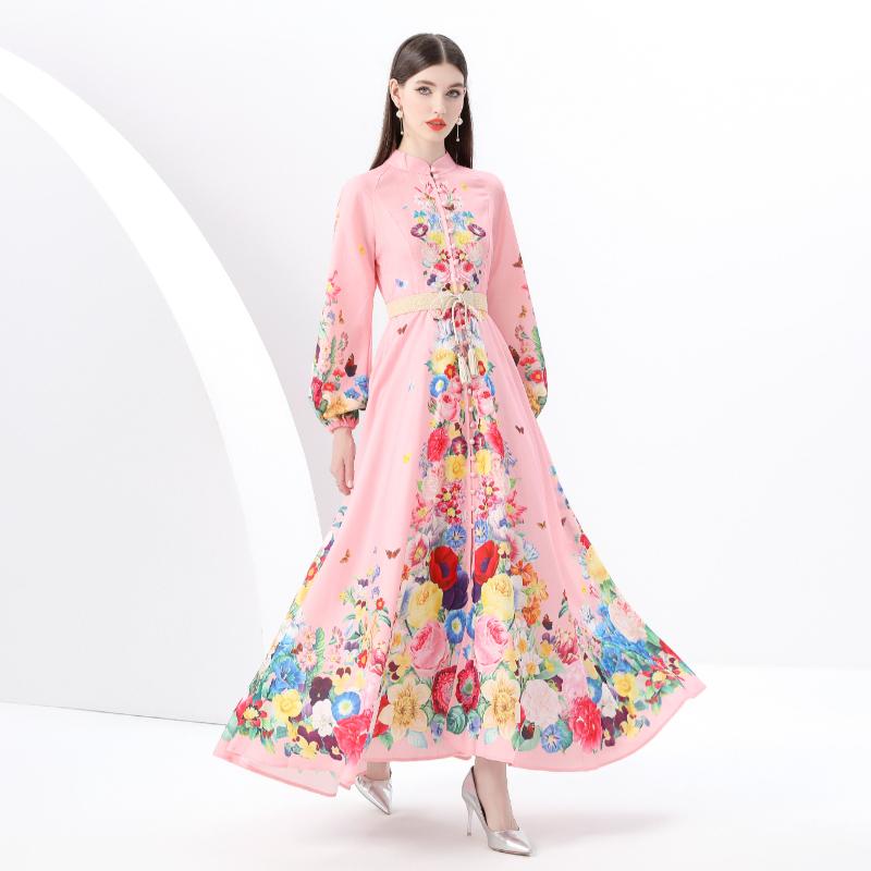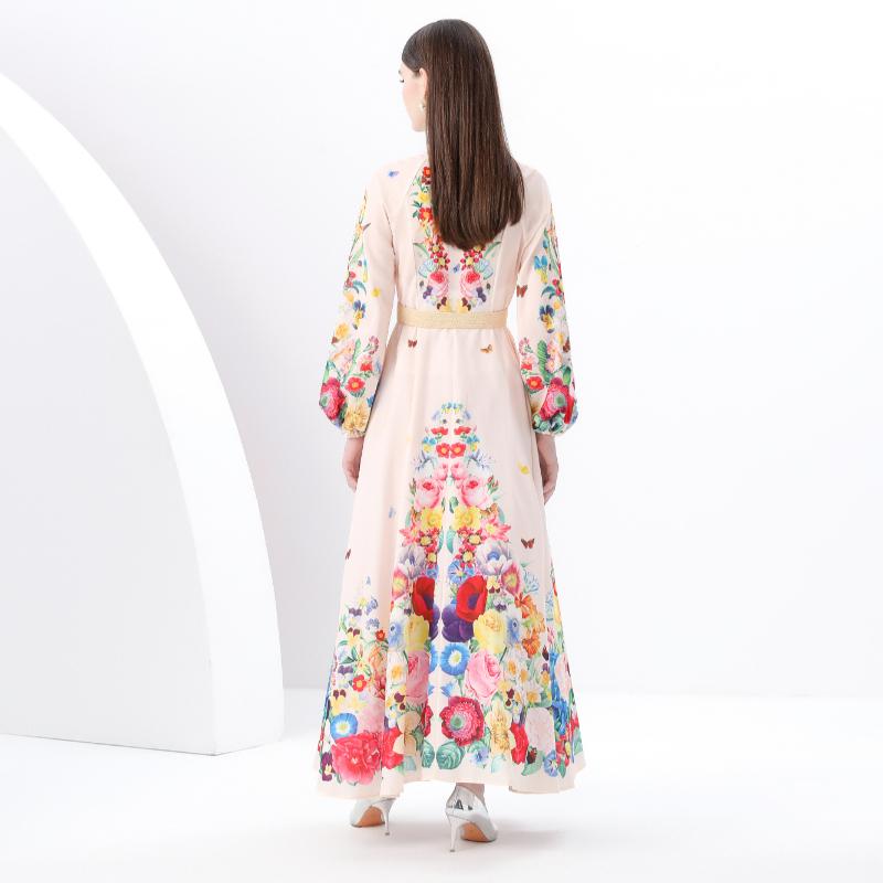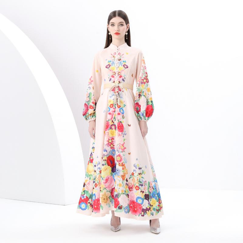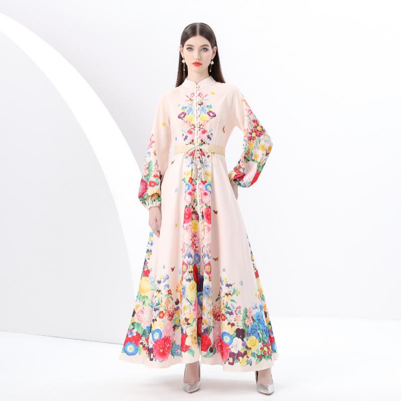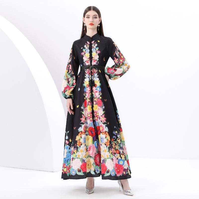 Весна-лето Женские однобортные длинные макси-платья для пляжа с поясом и принтом больших размеров