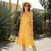 YYFS Женская мода лето весна цветочный узор принт с коротким рукавом V-образным вырезом с высокой талией повседневные платья