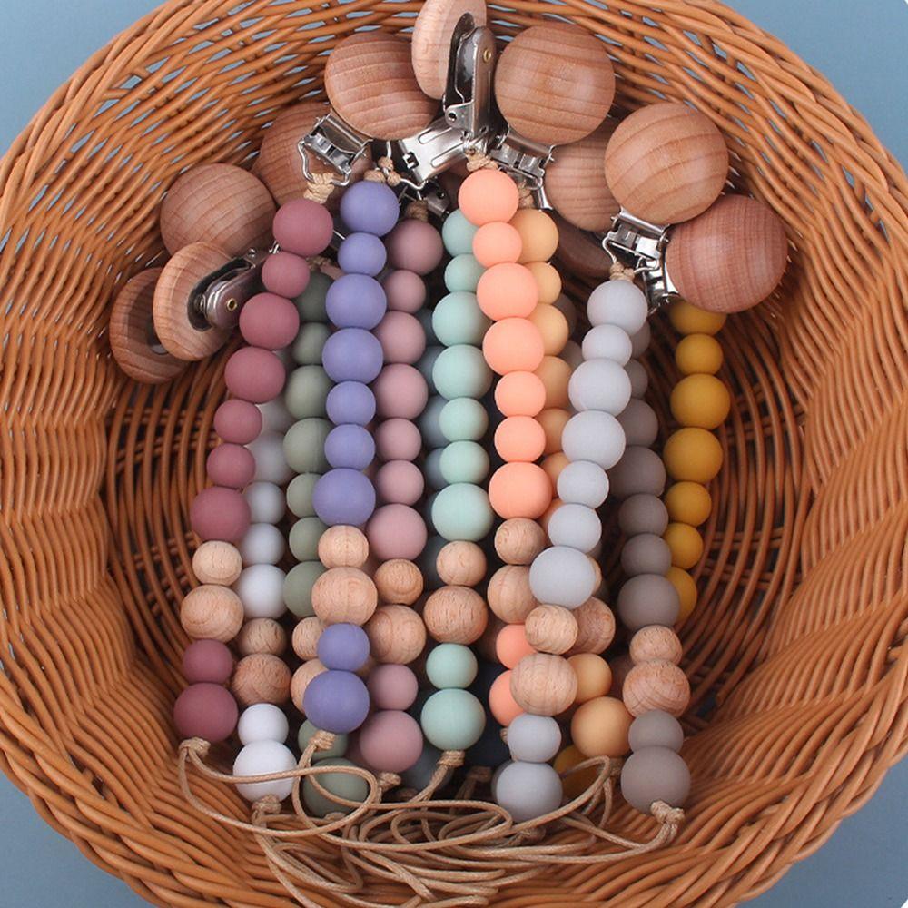 Круглая детская соска-цепочка деревянная бусина детские прорезыватели для зубов игрушки ремни держатель для соски клипсы детские