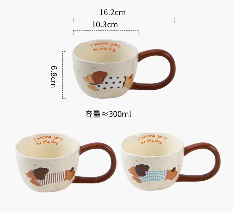 300 мл керамическая кружка с рисунком милого щенка, кофейные кружки с креативной ручкой и большими ушами, чашки для завтрака, молока, овсянки, домашнего офиса, посуда для напитков